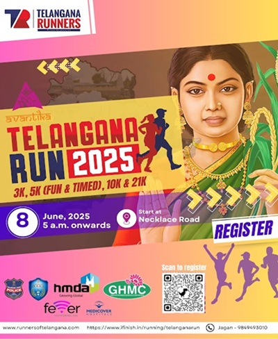 Join us for Telangana Run 2025 – a celebration of fitness, unity, and spirit! Happening on 8th June 2025 from 5 AM onwards at the scenic Necklace Road, Hyderabad, this high-energy event features 3K, 5K, 10K, and 21K runs for all age groups and fitness levels. Lace up and be part of the movement!